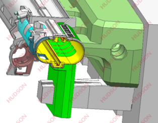 ③模具结构复杂,有前模斜顶、后模内滑块、后模侧先拔入子。