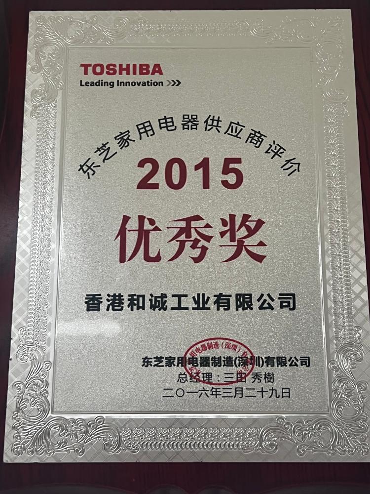 2015年:东芝家用电器制造公司供货商评价:最优秀奖;