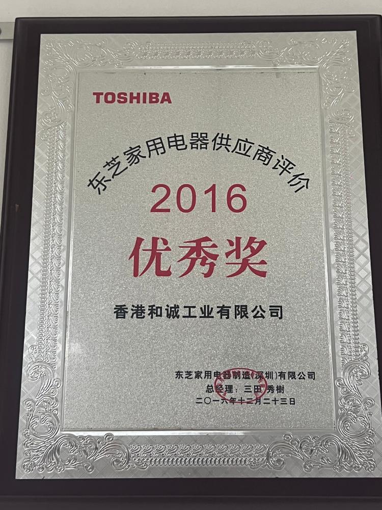 2016年:东芝家用电器制造公司供货商评价:最优秀奖;