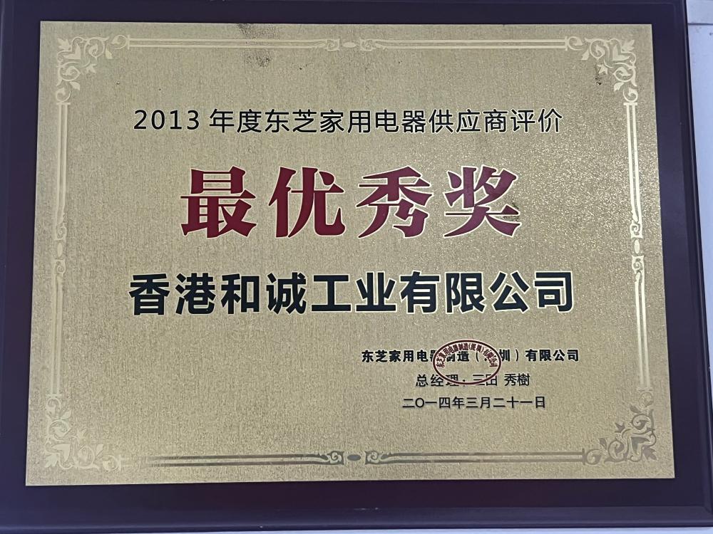 2013年:东芝家用电器制造公司供货商评价:最优秀奖;