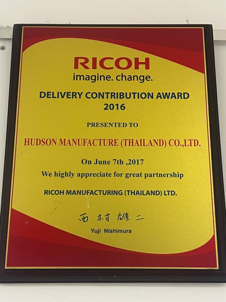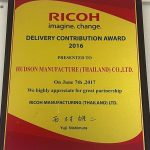 2017年:THAI HUDSON公司受到RICOH(THAI) 公司2016年度交期贡献奖;
