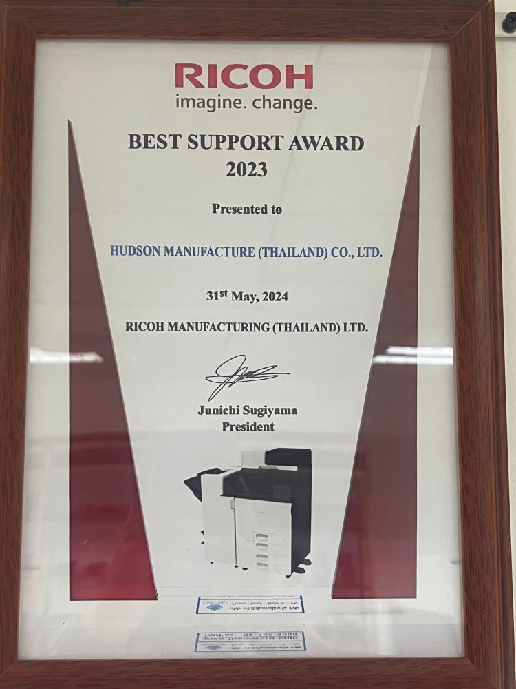 2024年:THAI HUDSON获得RICOH(THAI) 2023年度优秀供应商奖;